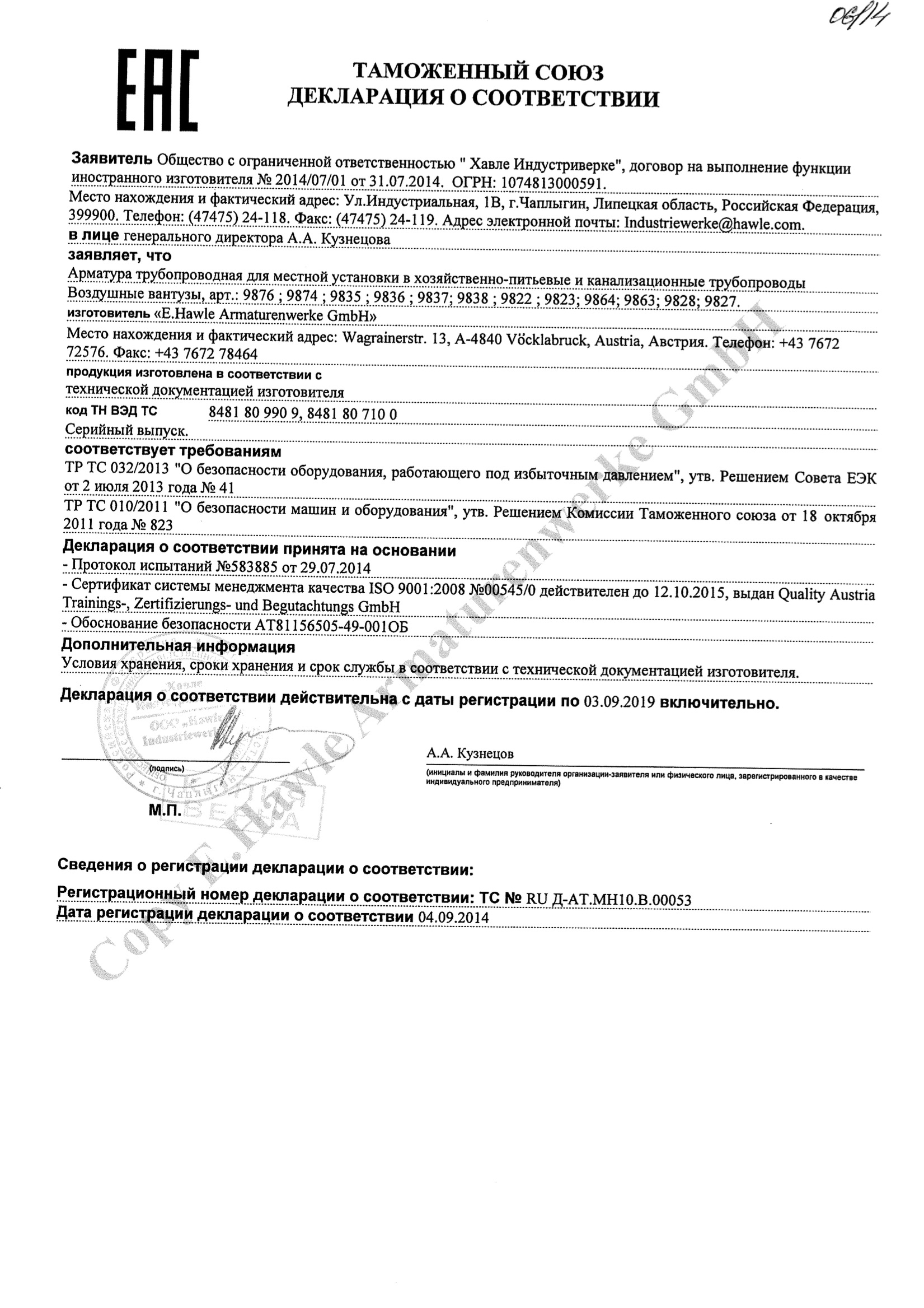 Воздушный вантуз одноступенчатый (без рабочего клапана)
