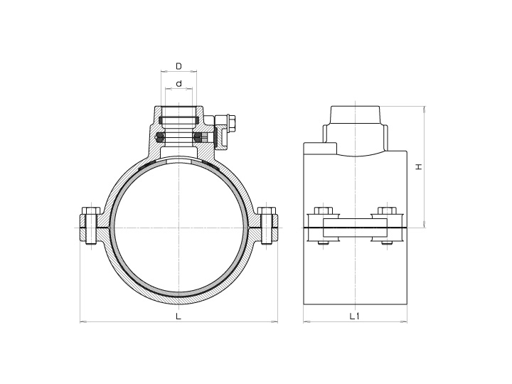 Перекрывающийся врезной хомут, для PE и PVC труб