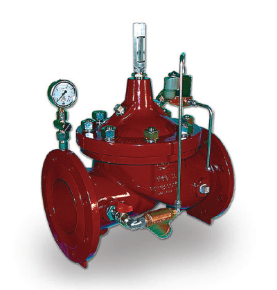 Электрический двухпозиционный клапан Cla-Val 136E-01 открывается полностью, если электромагнитный клапан находится под напряжением. Если электромагнитный клапан обесточен, то основной клапан закрывается полностью.