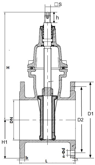 Упругозапирающаяся клиновая задвижка с обрезиненным клином и невыдвижным шпинделем согласно EN1171, EN1074-2.