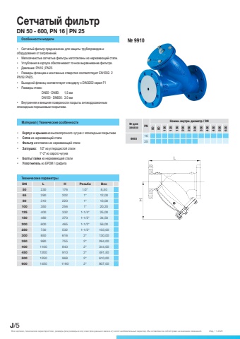 %u2116 9910%u0421%u0435%u0442%u0447%u0430%u0442%u044b%u0439 %u0444%u0438%u043b%u044c%u0442%u0440 %u0422%u0435%u0445%u043d%u0438%u0447%u0435%u0441%u043a%u0438%u0435 %u043f%u0430%u0440%u0430%u043c%u0435%u0442%u0440%u044b%u0412%u0441%u0435 %u0447%u0435%u0440%u0442%u0435%u0436%u0438, %u0442%u0435%u0445%u043d%u0438%u0447%u0435%u0441%u043a%u0438%u0435 %u0445%u0430%u0440%u0430%u043a%u0442%u0435%u0440%u0438%u0441%u0442%u0438%u043a%u0438, %u0440%u0430%u0437%u043c%u0435%u0440%u044b (%u0432%u0441%u0435 %u0440%u0430%u0437%u043c%u0435%u0440%u044b %u0432 %u043c%u043c) %u0438 %u0432%u0435%u0441 (%u0432%u0441%u0435 %u0434%u0430%u043d%u043d%u044b%u0435 %u043e %u0432%u0435%u0441%u0435 %u0432 %u043a%u0433) %u043d%u043e%u0441%u044f%u0442 %u043d%u0435%u043e%u0431%u044f%u0437%u0430%u0442%u0435%u043b%u044c%u043d%u044b%u0439 %u0445%u0430%u0440%u0430%u043a%u0442%u0435%u0440. %u041c%u044b %u043e%u0441%u0442%u0430%u0432%u043b%u044f%u0435%u043c %u0437%u0430 %u0441%u043e%u0431%u043e%u0439 %u043f%u0440%u0430%u0432%u043e %u043d%u0430 %u0432%u043d%u0435%u0441%u0435%u043d%u0438%u0435 %u0438%u0437%u043c%u0435%u043d%u0435%u043d%u0438%u0439. %u0418%u0437%u0434. 11.2025DN 50 - 600, PN 16 | PN 25%u041e%u0441%u043e%u0431%u0435%u043d%u043d%u043e%u0441%u0442%u0438 %u043c%u043e%u0434%u0435%u043b%u0438%u2022 %u0421%u0435%u0442%u0447%u0430%u0442%u044b%u0439 %u0444%u0438%u043b%u044c%u0442%u0440 %u043f%u0440%u0435%u0434%u043d%u0430%u0437%u043d%u0430%u0447%u0435%u043d %u0434%u043b%u044f %u0437%u0430%u0449%u0438%u0442%u044b %u0442%u0440%u0443%u0431%u043e%u043f%u0440%u043e%u0432%u043e%u0434%u043e%u0432 %u0438 %u043e%u0431%u043e%u0440%u0443%u0434%u043e%u0432%u0430%u043d%u0438%u044f %u043e%u0442 %u0437%u0430%u0433%u0440%u044f%u0437%u043d%u0435%u043d%u0438%u0439.%u2022 %u041c%u0435%u043b%u043a%u043e%u044f%u0447%u0435%u0438%u0441%u0442%u044b%u0435 %u0441%u0435%u0442%u0447%u0430%u0442%u044b%u0435 %u0444%u0438%u043b%u044c%u0442%u0440%u044b %u0438%u0437%u0433%u043e%u0442%u043e%u0432%u043b%u0435%u043d%u044b %u0438%u0437 %u043d%u0435%u0440%u0436%u0430%u0432%u0435%u044e%u0449%u0435%u0439 %u0441%u0442%u0430%u043b%u0438. %u2022 %u0423%u0433%u043b%u0443%u0431%u043b%u0435%u043d%u0438%u044f %u0432 %u043a%u043e%u0440%u043f%u0443%u0441%u0435 %u043e%u0431%u0435%u0441%u043f%u0435%u0447%u0438%u0432%u0430%u044e%u0442 %u0442%u043e%u0447%u043d%u043e%u0435 %u0432%u044b%u0440%u0430%u0432%u043d%u0438%u0432%u0430%u043d%u0438%u0435 %u0444%u0438%u043b%u044c%u0442%u0440%u0430. %u2022 %u0414%u0430%u0432%u043b%u0435%u043d%u0438%u0435: PN16 | PN25%u2022 %u0420%u0430%u0437%u043c%u0435%u0440%u044b %u0444%u043b%u0430%u043d%u0446%u0435%u0432 %u0438 %u043c%u043e%u043d%u0442%u0430%u0436%u043d%u044b%u0435 %u043e%u0442%u0432%u0435%u0440%u0441%u0442%u0438%u044f %u0441%u043e%u043e%u0442%u0432%u0435%u0442%u0441%u0442%u0432%u0443%u044e%u0442 EN1092- 2 PN16/ PN25.%u2022 %u0412%u044b%u0445%u043e%u0434%u043d%u043e%u0439 %u0444%u043b%u0430%u043d%u0435%u0446 %u0441%u043e%u043e%u0442%u0432%u0435%u0442%u0441%u0442%u0432%u0443%u0435%u0442 %u0441%u0442%u0430%u043d%u0434%u0430%u0440%u0442%u0443 %u0441 DIN3202 %u0441%u0435%u0440%u0438%u044f F1%u2022 %u0420%u0430%u0437%u043c%u0435%u0440%u044b %u044f%u0447%u0435%u0435%u043a: DN50 - DN80: 1,5 %u043c%u043c DN100 - DN600: 3.0 %u043c%u043c%u2022 %u0412%u043d%u0443%u0442%u0440%u0435%u043d%u043d%u044f%u044f %u0438 %u0432%u043d%u0435%u0448%u043d%u044f%u044f %u043f%u043e%u0432%u0435%u0440%u0445%u043d%u043e%u0441%u0442%u0438 %u043f%u043e%u043a%u0440%u044b%u0442%u044b %u0430%u043d%u0442%u0438%u043a%u043e%u0440%u0440%u043e%u0437%u0438%u043e%u043d%u043d%u044b%u043c %u044d%u043f%u043e%u043a%u0441%u0438%u0434%u043d%u044b%u043c %u043f%u043e%u0440%u043e%u0448%u043a%u043e%u0432%u044b%u043c %u043f%u043e%u043a%u0440%u044b%u0442%u0438%u0435%u043c.%u041c%u0430%u0442%u0435%u0440%u0438%u0430%u043b | %u0422%u0435%u0445%u043d%u0438%u0447%u0435%u0441%u043a%u0438%u0435 %u043e%u0441%u043e%u0431%u0435%u043d%u043d%u043e%u0441%u0442%u0438%u2022 %u041a%u043e%u0440%u043f%u0443%u0441 %u0438 %u043a%u0440%u044b%u0448%u043a%u0430 %u0438%u0437 %u0432%u044b%u0441%u043e%u043a%u043e%u043f%u0440%u043e%u0447%u043d%u043e%u0433%u043e %u0447%u0443%u0433%u0443%u043d%u0430 %u0441 %u044d%u043f%u043e%u043a%u0441%u0438%u0434%u043d%u044b%u043c %u043f%u043e%u043a%u0440%u044b%u0442%u0438%u0435%u043c%u2022 C%u0435%u0442%u043a%u0430 %u0438%u0437 %u043d%u0435%u0440%u0436%u0430%u0432%u0435%u044e%u0449%u0435%u0439 %u0441%u0442%u0430%u043b%u0438%u2022 %u0424%u0438%u043b%u044c%u0442%u0440 %u0438%u0437%u0433%u043e%u0442%u043e%u0432%u043b%u0435%u043d %u0438%u0437 %u043d%u0435%u0440%u0436%u0430%u0432%u0435%u044e%u0449%u0435%u0439 %u0441%u0442%u0430%u043b%u0438%u2022 %u0417%u0430%u0433%u043b%u0443%u0448%u043a%u0430: 1/2\ 1\%u2022 %u0411%u043e%u043b%u0442%u044b/ %u0433%u0430%u0439%u043a%u0438 %u0438%u0437 %u043d%u0435%u0440%u0436%u0430%u0432%u0435%u044e%u0449%u0435%u0439 %u0441%u0442%u0430%u043b%u0438%u2022 %u0423%u043f%u043b%u043e%u0442%u043d%u0438%u0442%u0435%u043b%u044c %u0438%u0437 EPDM / %u0433%u0440%u0430%u0444%u0438%u0442%u0430%u2116 %u0434%u043b%u044f %u0437%u0430%u043a%u0430%u0437%u0430PN%u041d%u043e%u043c%u0438%u043d. %u0432%u043d%u0443%u0442%u0440%u0438. %u0434%u0438%u0430%u043c%u0435%u0442%u0440 / DN5080 100 125 150 200 250 300 350 400 450 500 60099101625DN L H %u0420%u0435%u0437%u044c%u0431%u0430 %u0412%u0435%u044150 230 176 1/2\8,5065 290 202 1\ 12,0080 310 220 1\ 13,00100 350 256 1\ 20,20125 400 332 1-1/4\25,00150 480 370 1-1/2\34,50200 600 465 1-1/2\56,00250 730 532 1-1/2\103,00300 850 616 2\130,00350 980 755 2\264,00400 1100 840 2\344,00450 1200 910 2\491,50500 1250 968 2\610,00600 1450 1160 2\807,00 J/5