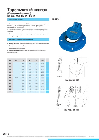 DN PN H D L %u0412%u0435%u04418010/16125 200 69 5,17100 135 220 70 5,88150 160 285 80 9,20200 177 340 79 23,0250 202 405 87 26,0300 233 460 87 30,0350 275 520 93 32,0400 320 580 100 37,0450 360 640 103 40,0500 410 715 108 112,0600 470 840 114 160,0 D/15%u0412%u0441%u0435 %u0447%u0435%u0440%u0442%u0435%u0436%u0438, %u0442%u0435%u0445%u043d%u0438%u0447%u0435%u0441%u043a%u0438%u0435 %u0445%u0430%u0440%u0430%u043a%u0442%u0435%u0440%u0438%u0441%u0442%u0438%u043a%u0438, %u0440%u0430%u0437%u043c%u0435%u0440%u044b (%u0432%u0441%u0435 %u0440%u0430%u0437%u043c%u0435%u0440%u044b %u0432 %u043c%u043c) %u0438 %u0432%u0435%u0441 (%u0432%u0441%u0435 %u0434%u0430%u043d%u043d%u044b%u0435 %u043e %u0432%u0435%u0441%u0435 %u0432 %u043a%u0433) %u043d%u043e%u0441%u044f%u0442 %u043d%u0435%u043e%u0431%u044f%u0437%u0430%u0442%u0435%u043b%u044c%u043d%u044b%u0439 %u0445%u0430%u0440%u0430%u043a%u0442%u0435%u0440. %u041c%u044b %u043e%u0441%u0442%u0430%u0432%u043b%u044f%u0435%u043c %u0437%u0430 %u0441%u043e%u0431%u043e%u0439 %u043f%u0440%u0430%u0432%u043e %u043d%u0430 %u0432%u043d%u0435%u0441%u0435%u043d%u0438%u0435 %u0438%u0437%u043c%u0435%u043d%u0435%u043d%u0438%u0439. %u0418%u0437%u0434. 11.2025%u2022 %u041a%u043e%u0440%u043f%u0443%u0441 %u0438 %u043a%u043b%u0430%u043f%u0430%u043d %u0438%u0437 %u0432%u044b%u0441%u043e%u043a%u043e%u043f%u0440%u043e%u0447%u043d%u043e%u0433%u043e %u0447%u0443%u0433%u0443%u043d%u0430 %u0441 %u044d%u043f%u043e%u043a%u0441%u0438%u0434%u043d%u044b%u043c %u043f%u043e%u043a%u0440%u044b%u0442%u0438%u0435%u043c%u2022 %u041a%u0440%u0435%u043f%u0435%u0436 %u0438%u0437 %u043d%u0435%u0440%u0436%u0430%u0432%u0435%u044e%u0449%u0435%u0439 %u0441%u0442%u0430%u043b%u0438%u2022 %u0423%u043f%u043b%u043e%u0442%u043d%u0435%u043d%u0438%u0435 %u0438%u0437 %u044d%u043b%u0430%u0441%u0442%u043e%u043c%u0435%u0440%u0430%u2022 %u0414%u0432%u043e%u0439%u043d%u043e%u0439 %u0448%u0430%u0440%u043d%u0438%u0440 %u043f%u0440%u0435%u043f%u044f%u0442%u0441%u0442%u0432%u0443%u0435%u0442 %u0437%u0430%u0441%u043e%u0440%u0435%u043d%u0438%u044e %u043f%u0440%u043e%u0445%u043e%u0434%u0430 %u0431%u043b%u0430%u0433%u043e%u0434%u0430%u0440%u044f %u0441%u0432%u043e%u0431%u043e%u0434%u043d%u043e%u043c%u0443 %u0441%u0442%u043e%u043a%u0443%u041e%u0441%u043e%u0431%u0435%u043d%u043d%u043e%u0441%u0442%u0438 %u043c%u043e%u0434%u0435%u043b%u0438 %u2116 9930%u2022 %u0421 %u0444%u043b%u0430%u043d%u0446%u0435%u0432%u044b%u043c %u0441%u043e%u0435%u0434%u0438%u043d%u0435%u043d%u0438%u0435%u043c PN 16 %u0432 %u0441%u043e%u043e%u0442%u0432%u0435%u0442%u0441%u0442%u0432%u0438%u0438 %u0441%u043e %u0441%u0442%u0430%u043d%u0434%u0430%u0440%u0442%u043e%u043c EN 1092-2, %u0413%u041e%u0421%u0422 12815-80 %u0414%u043b%u044f DN 200 - DN 600 %u0444%u043b%u0430%u043d%u0446%u0435%u0432%u043e%u0435 %u0441%u043e%u0435%u0434%u0438%u043d%u0435%u043d%u0438%u0435 PN 16 %u043f%u043e %u0437%u0430%u043f%u0440%u043e%u0441%u0443.%u2022 %u0422%u0430%u0440%u0435%u043b%u044c%u0447%u0430%u0442%u044b%u0439 %u043a%u043b%u0430%u043f%u0430%u043d %u0441 %u0434%u0432%u043e%u0439%u043d%u044b%u043c %u0448%u0430%u0440%u043d%u0438%u0440%u043d%u044b%u043c %u043a%u043e%u043b%u0435%u043d%u043e%u043c %u0434%u043b%u044f %u043b%u0443%u0447%u0448%u0435%u0433%u043e %u0437%u0430%u043f%u0438%u0440%u0430%u043d%u0438%u044f.%u2022 %u0423%u043f%u043b%u043e%u0442%u043d%u0435%u043d%u0438%u0435 %u0432 %u043a%u0440%u044b%u0448%u043a%u0435 %u043a%u043b%u0430%u043f%u0430%u043d%u0430 %u0434%u043b%u044f %u0437%u0430%u0449%u0438%u0442%u044b %u043e%u0442 %u0448%u0443%u043c%u0430 %u0438 %u0434%u043b%u044f %u0434%u043e%u043b%u0433%u043e%u0433%u043e%u0441%u0440%u043e%u043a%u0430 %u0441%u043b%u0443%u0436%u0431%u044b %u043f%u043e%u043a%u0440%u044b%u0442%u0438%u044f. %u041c%u0430%u0442%u0435%u0440%u0438%u0430%u043b | %u0422%u0435%u0445%u043d%u0438%u0447%u0435%u0441%u043a%u0438%u0435 %u043e%u0441%u043e%u0431%u0435%u043d%u043d%u043e%u0441%u0442%u0438%u0422%u0430%u0440%u0435%u043b%u044c%u0447%u0430%u0442%u044b%u0439 %u043a%u043b%u0430%u043f%u0430%u043d (%u041a%u043b%u0430%u043f%u0430%u043d%u043d%u044b%u0439 %u0437%u0430%u0442%u0432%u043e%u0440)DN 80 - 600, PN 10 | PN 16DN 80 - DN 150DN 200 - DN 600