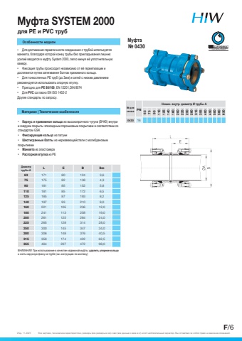 %u0414%u0438%u0430%u043c%u0435%u0442%u0440 %u0442%u0440%u0443%u0431%u044b %u0410 L E B %u0412%u0435%u044163 171 80 124 3,675 175 82 138 4,390 181 85 152 5,8110 181 85 172 6,5125 185 87 193 8,2140 197 93 210 9,0160 221 105 236 12,0180 241 113 258 19,0200 261 125 284 24,0225 265 128 314 28,0250 300 145 347 34,0280 306 148 376 40,5315 358 174 422 62,5355 464 237 472 98,0%u2116 %u0434%u043b%u044f %u0437%u0430%u043a%u0430%u0437%u0430 PN%u041d%u043e%u043c%u0438%u043d. %u0432%u043d%u0443%u0442%u0440. %u0434%u0438%u0430%u043c%u0435%u0442%u0440 %u00d8 %u0442%u0440%u0443%u0431%u044b A637590 110 125 140 160 200 225 250 280 315 355 400 450 500 560 6300430 16 %u041e%u0441%u043e%u0431%u0435%u043d%u043d%u043e%u0441%u0442%u0438 %u043c%u043e%u0434%u0435%u043b%u0438 %u041c%u0443%u0444%u0442%u0430%u2116 0430%u0412%u041d%u0418%u041c%u0410%u041d%u0418%u0415! %u041f%u0440%u0438 %u0438%u0441%u043f%u043e%u043b%u044c%u0437%u043e%u0432%u0430%u043d%u0438%u0435 %u0432 %u043a%u0430%u0447%u0435%u0441%u0442%u0432%u0435 %u043d%u0430%u0434%u0432%u0438%u0436%u043d%u043e%u0439 %u043c%u0443%u0444%u0442%u044b: %u0443%u0434%u0430%u043b%u0438%u0442%u044c %u0443%u043f%u043e%u0440%u043d%u043e%u0435 %u043a%u043e%u043b%u044c%u0446%u043e%u0438 %u0441%u043d%u044f%u0442%u044c %u043d%u0430%u0440%u0443%u0436%u043d%u0443%u044e %u0444%u0430%u0441%u043a%u0443 %u043d%u0430 %u0442%u0440%u0443%u0431%u0435 (%u0441%u043c. %u0438%u043d%u0441%u0442%u0440%u0443%u043a%u0446%u0438%u044e %u043f%u043e %u043c%u043e%u043d%u0442%u0430%u0436%u0443)%u0418%u0437%u0434. 11.2025 %u0412%u0441%u0435 %u0447%u0435%u0440%u0442%u0435%u0436%u0438, %u0442%u0435%u0445%u043d%u0438%u0447%u0435%u0441%u043a%u0438%u0435 %u0445%u0430%u0440%u0430%u043a%u0442%u0435%u0440%u0438%u0441%u0442%u0438%u043a%u0438, %u0440%u0430%u0437%u043c%u0435%u0440%u044b (%u0432%u0441%u0435 %u0440%u0430%u0437%u043c%u0435%u0440%u044b %u0432 %u043c%u043c) %u0438 %u0432%u0435%u0441 (%u0432%u0441%u0435 %u0434%u0430%u043d%u043d%u044b%u0435 %u043e %u0432%u0435%u0441%u0435 %u0432 %u043a%u0433) %u043d%u043e%u0441%u044f%u0442 %u043d%u0435%u043e%u0431%u044f%u0437%u0430%u0442%u0435%u043b%u044c%u043d%u044b%u0439 %u0445%u0430%u0440%u0430%u043a%u0442%u0435%u0440. %u041c%u044b %u043e%u0441%u0442%u0430%u0432%u043b%u044f%u0435%u043c %u0437%u0430 %u0441%u043e%u0431%u043e%u0439 %u043f%u0440%u0430%u0432%u043e %u043d%u0430 %u0432%u043d%u0435%u0441%u0435%u043d%u0438%u0435 %u0438%u0437%u043c%u0435%u043d%u0435%u043d%u0438%u0439.%u041c%u0443%u0444%u0442%u0430 SYSTEM 2000%u0434%u043b%u044f PE %u0438 PVC %u0442%u0440%u0443%u0431%u2022 %u0414%u043b%u044f %u0434%u043e%u0441%u0442%u0438%u0436%u0435%u043d%u0438%u044f %u0433%u0435%u0440%u043c%u0435%u0442%u0438%u0447%u043d%u043e%u0441%u0442%u0438 %u0441%u043e%u0435%u0434%u0438%u043d%u0435%u043d%u0438%u044f %u0441 %u0442%u0440%u0443%u0431%u043e%u0439 %u0438%u0441%u043f%u043e%u043b%u044c%u0437%u0443%u0435%u0442%u0441%u044f %u043c%u0430%u043d%u0436%u0435%u0442%u0430, %u0431%u043b%u0430%u0433%u043e%u0434%u0430%u0440%u044f %u043a%u043e%u0442%u043e%u0440%u043e%u0439 %u043a%u043e%u043d%u0435%u0446 %u0442%u0440%u0443%u0431%u044b %u0431%u0435%u0437 %u043f%u0440%u0438%u043a%u043b%u0430%u0434%u044b%u0432%u0430%u043d%u0438%u044f %u043b%u0438%u0448%u043d%u0438%u0445 %u0443%u0441%u0438%u043b%u0438%u0439 %u0432%u0432%u043e%u0434%u0438%u0442%u0441%u044f %u0432 %u043c%u0443%u0444%u0442%u0443 System 2000, %u043b%u0435%u0433%u043a%u043e %u043c%u0438%u043d%u0443%u044f %u0435%u0451 %u0443%u043f%u043b%u043e%u0442%u043d%u0438%u0442%u0435%u043b%u044c%u043d%u0443%u044e %u043a%u0430%u043c%u0435%u0440%u0443.%u2022 %u0424%u0438%u043a%u0441%u0430%u0446%u0438%u044f %u0442%u0440%u0443%u0431%u044b %u043f%u0440%u043e%u0438%u0441%u0445%u043e%u0434%u0438%u0442 %u043d%u0435%u0437%u0430%u0432%u0438%u0441%u0438%u043c%u043e %u043e%u0442 %u0435%u0451 %u0433%u0435%u0440%u043c%u0435%u0442%u0438%u0437%u0430%u0446%u0438%u0438 %u0438 %u0434%u043e%u0441%u0442%u0438%u0433%u0430%u0435%u0442%u0441%u044f %u043f%u0443%u0442%u0435%u043c %u0437%u0430%u0442%u044f%u0433%u0438%u0432%u0430%u043d%u0438%u044f %u0431%u043e%u043b%u0442%u043e%u0432 %u043f%u0440%u0438%u0436%u0438%u043c%u043d%u043e%u0433%u043e %u043a%u043e%u043b%u044c%u0446%u0430.%u2022 %u0414%u043b%u044f %u0442%u043e%u043d%u043a%u043e%u0441%u0442%u0435%u043d%u043d%u044b%u0445 PE %u0442%u0440%u0443%u0431 (%u0434%u043e 3%u043c%u043c) %u0438 %u0441%u0435%u0442%u0435%u0439 %u0441 %u043d%u0438%u0437%u043a%u0438%u043c %u0434%u0430%u0432%u043b%u0435%u043d%u0438%u0435%u043c %u0440%u0435%u043a%u043e%u043c%u0435%u043d%u0434%u0443%u0435%u0442%u0441%u044f %u0438%u0441%u043f%u043e%u043b%u044c%u0437%u043e%u0432%u0430%u0442%u044c %u043e%u043f%u043e%u0440%u043d%u0443%u044e %u0432%u0442%u0443%u043b%u043a%u0443.%u2022 %u041f%u0440%u0438%u0433%u043e%u0434%u043d%u043e %u0434%u043b%u044f PE 80/100, EN 12201,DIN 8074%u2022 %u0414%u043b%u044f PVC %u0441%u043e%u0433%u043b%u0430%u0441%u043d%u043e EN ISO 1452-2%u0414%u0440%u0443%u0433%u0438%u0435 %u0441%u0442%u0430%u043d%u0434%u0430%u0440%u0442%u044b %u043f%u043e %u0437%u0430%u043f%u0440%u043e%u0441%u0443.F/6%u041c%u0430%u0442%u0435%u0440%u0438%u0430%u043b | %u0422%u0435%u0445%u043d%u0438%u0447%u0435%u0441%u043a%u0438%u0435 %u043e%u0441%u043e%u0431%u0435%u043d%u043d%u043e%u0441%u0442%u0438%u2022 %u041a%u043e%u0440%u043f%u0443%u0441 %u0438 %u043f%u0440%u0438%u0436%u0438%u043c%u043d%u043e%u0435 %u043a%u043e%u043b%u044c%u0446%u043e %u0438%u0437 %u0432%u044b%u0441%u043e%u043a%u043e%u043f%u0440%u043e%u0447%u043d%u043e%u0433%u043e %u0447%u0443%u0433%u0443%u043d%u0430 (%u0412%u042740) %u0432%u043d%u0443%u0442%u0440%u0438 %u0438 %u0441%u043d%u0430%u0440%u0443%u0436%u0438 %u043f%u043e%u043a%u0440%u044b%u0442%u044b %u044d%u043f%u043e%u043a%u0441%u0438%u0434%u043d%u044b%u043c %u043f%u043e%u0440%u043e%u0448%u043a%u043e%u0432%u044b%u043c %u043f%u043e%u043a%u0440%u044b%u0442%u0438%u0435%u043c %u0432 %u0441%u043e%u043e%u0442%u0432%u0435%u0442%u0441%u0442%u0432%u0438%u0438 %u0441%u043e %u0441%u0442%u0430%u043d%u0434%u0430%u0440%u0442%u043e%u043c GSK%u2022 %u0424%u