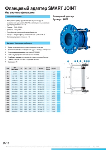 DN OD%u043c%u0438%u043d / %u043c%u0430%u043a%u0441 D D2 D3 L MXL1 %u041a%u043e%u043b-%u0432%u043e%u0431%u043e%u043b%u0442%u043e%u0432 %u0412%u0435%u0441, %u043a%u043350 58-74 166 110 50 100 M12x150 4 4,260 68-84 187 125 65 100 M12x150 4 5,080 84-105 200 140 80 100 M12x150 4 6,3100 99-118 235 155 100 100 M12x150 4 6,8100 109-133 235 155 100 105 M12x150 4 7,8125 133-157 285 185 133 110 M12x170 4 11,0150 157-182 285 215 150 110 M12x170 4 12,5200 194-215 345 265 200 120 M12x170 4 15,5200 218-248 345 265 200 120 M12x170 4 17,5250 242-268 410 320 245 120 M12x170 6 20,5250 266-291 410 320 250 120 M12x170 6 21,0250 280-305 410 320 250 120 M12x170 6 25,5300 302-327 490 370 300 120 M12x170 6 27,0300 324-350 455 410 310 140 M12x190 6 24,0350 352-378 520 470 350 120 M14x170 8 25,4350 384-410 520 470 360 140 M14x190 8 29,2400 384-410 580 525 400 160 M14x210 8 29,2400 410-236 580 525 400 160 M14x210 8 34,5400 436-462 580 525 410 160 M14x210 8 36,8%u041e%u0441%u043e%u0431%u0435%u043d%u043d%u043e%u0441%u0442%u0438 %u043c%u043e%u0434%u0435%u043b%u0438%u2022 %u0424%u043b%u0430%u043d%u0446%u0435%u0432%u0435%u0432%u044b%u0439 %u0430%u0434%u0430%u043f%u0442%u0435%u0440 %u043f%u0440%u0435%u0434%u043d%u0430%u0437%u043d%u0430%u0447%u0435%u043d %u0434%u043b%u044f %u0441%u043e%u0435%u0434%u0438%u043d%u0435%u043d%u0438%u044f %u0442%u0440%u0443%u0431 %u0438%u0437 %u0432%u044b%u0441%u043e%u043a%u043e%u043f%u0440%u043e%u0447%u043d%u043e%u0433%u043e %u0447%u0443%u0433%u0443%u043d%u0430, %u0441%u0442%u0430%u043b%u0438, PE, PVC %u0438 %u0430%u0441%u0431%u0435%u0441%u0442%u043e%u0446%u0435%u043c%u0435%u043d%u0442%u043d%u044b%u0445 %u0432 %u0441%u0438%u0441%u0442%u0435%u043c%u0430%u0445 %u0442%u0440%u0443%u0431%u043e%u043f%u0440%u043e%u0432%u043e%u0434%u043e%u0432 %u0441%u043e%u0433%u043b%u0430%u0441%u043d%u043e EN 545.%u2022 %u0420%u0430%u0437%u043c%u0435%u0440%u044b: DN50 - DN400.%u2022 %u0414%u0430%u0432%u043b%u0435%u043d%u0438%u0435: PN10 | PN16%u2022 %u041f%u0440%u043e%u0441%u0442%u043e%u0439 %u043c%u043e%u043d%u0442%u0430%u0436 %u0438 %u0434%u0435%u043c%u043e%u043d%u0442%u0430%u0436 %u0444%u043b%u0430%u043d%u0446%u0435%u0432%u043e%u0439 %u0430%u0440%u043c%u0430%u0442%u0443%u0440%u044b %u2022 %u0420%u0430%u0437%u043c%u0435%u0440%u044b %u0438 %u043e%u0442%u0432%u0435%u0440%u0441%u0442%u0438%u044f %u0444%u043b%u0430%u043d%u0446%u0430 %u0441%u043e%u0433%u043b%u0430%u0441%u043d%u043e EN 1092-2 | PN 10, PN 16%u2022 %u041a%u043e%u043c%u043f%u0435%u043d%u0441%u0430%u0446%u0438%u044f %u0443%u0433%u043b%u043e%u0432%u043e%u0433%u043e %u043e%u0442%u043a%u043b%u043e%u043d%u0435%u043d%u0438%u044f +/- 3%u00b0 1 %u041a%u043e%u0440%u043f%u0443%u0441 %u0438%u0437 %u0432%u044b%u0441%u043e%u043a%u043e%u043f%u0440%u043e%u0447%u043d%u043e%u0433%u043e %u0447%u0443%u0433%u0443%u043d%u0430 %u0441 %u044d%u043f%u043e%u043a%u0441%u0438%u0434%u043d%u044b%u043c %u043f%u043e%u043a%u0440%u044b%u0442%u0438%u0435%u043c2 %u041f%u0440%u0438%u0436%u0438%u043c%u043d%u043e%u0435 %u043a%u043e%u043b%u044c%u0446%u043e %u0438%u0437 %u0432%u044b%u0441%u043e%u043a%u043e%u043f%u0440%u043e%u0447%u043d%u043e%u0433%u043e %u0447%u0443%u0433%u0443%u043d%u0430 %u0441 %u044d%u043f%u043e%u043a%u0441%u0438%u0434%u043d%u044b%u043c %u043f%u043e%u043a%u0440%u044b%u0442%u0438%u0435%u043c3 %u0423%u043f%u043b%u043e%u0442%u043d%u0438%u0442%u0435%u043b%u044c%u043d%u043e%u0435 %u043a%u043e%u043b%u044c%u0446%u043e %u0438%u0437 %u044d%u043b%u0430%u0441%u0442%u043e%u043c%u0435%u0440%u0430 EPDM/NBR4 %u0411%u043e%u043b%u0442%u044b %u0438%u0437 %u0443%u0433%u043b%u0435%u0440%u043e%u0434%u0438%u0441%u0442%u043e%u0439 %u0441%u0442%u0430%u043b%u0438 %u0441 %u043f%u043e%u043a%u0440%u044b%u0442%u0438%u0435%u043c Dacromet5 %u0420%u0435%u0437%u044c%u0431%u043e%u0432%u044b%u0435 %u0448%u043f%u0438%u043b%u044c%u043a%u0438 %u0438%u0437 %u0443%u0433%u043b%u0435%u0440%u043e%u0434%u0438%u0441%u0442%u043e%u0439 %u0441%u0442%u0430%u043b%u0438 %u0441 %u043f%u043e%u043a%u0440%u044b%u0442%u0438%u0435%u043c Dacromet6 %u0413%u0430%u0439%u043a%u0438 %u0438%u0437 %u0443%u0433%u043b%u0435%u0440%u043e%u0434%u0438%u0441%u0442%u043e%u0439 %u0441%u0442%u0430%u043b%u0438 %u0441 %u043f%u043e%u043a%u0440%u044b%u0442%u0438%u0435%u043c Dacromet7 %u041a%u043e%u043b%u043f%u0430%u0447%u043a%u0438 %u0438%u0437 PE %u041c%u0430%u0442%u0435%u0440%u0438%u0430%u043b | %u0422%u0435%u0445%u043d%u0438%u0447%u0435%u0441%u043a%u0438%u0435 %u043e%u0441%u043e%u0431%u0435%u043d%u043d%u043e%u0441%u0442%u0438%u0412%u0441%u0435 %u0447%u0435%u0440%u0442%u0435%u0436%u0438, %u0442%u0435%u0445%u043d%u0438%u0447%u0435%u0441%u043a%u0438%u0435 %u0445%u0430%u0440%u0430%u043a%u0442%u0435%u0440%u0438%u0441%u0442%u0438%u043a%u0438, %u0440%u0430%u0437%u043c%u0435%u0440%u044b (%u0432%u0441%u0435 %u0440%u0430%u0437%u043c%u0435%u0440%u044b %u0432 %u043c%u043c) %u0438 %u0432%u0435%u0441 (%u0432%u0441%u0435 %u0434%u0430%u043d%u043d%u044b%u0435 %u043e %u0432%u0435%u0441%u0435 %u0432 %u043a%u0433) %u043d%u043e%u0441%u044f%u0442 %u043d%u0435%u043e%u0431%u044f%u0437%u0430%u0442%u0435%u043b%u044c%u043d%u044b%u0439 %u0445%u0430%u0440%u0430%u043a%u0442%u0435%u0440. %u041c%u044b %u043e%u0441%u0442%u0430%u0432%u043b%u044f%u0435%u043c %u0437%u0430 %u0441%u043e%u0431%u043e%u0439 %u043f%u0440%u0430%u0432%u043e %u043d%u0430 %u0432%u043d%u0435%u0441%u0435%u043d%u0438%u0435 %u0438%u0437%u043c%u0435%u043d%u0435%u043d%u0438%u0439. %u0418%u0437%u0434. 11.2025%u0424%u043b%u0430%u043d%u0446%u0435%u0432%u044b%u0439 %u0430%u0434%u0430%u043f%u0442%u0435%u0440 SMART JOINT %u0431%u0435%u0437 %u0441%u0438%u0441%u0442%u0435%u043c%u044b %u0444%u0438%u043a%u0441%u0430%u0446%u0438%u0438%u0438%u0410%u0440%u0442%u0438%u043a%u0443%u043b: SMFE %u0424%u043b%u0430%u043d%u0446%u0435%u0432%u044b%u0439 %u0430%u0434%u0430%u043f%u0442%u0435%u0440 F/11